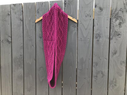 The Brónach Infinity Scarf was inspired by a friend. This piece celebrates her! Named for her and the Irish Saint Brónach, this piece makes a statement with its length and Celtic motif. A blackberry stitch border symbolises her three children and, finally, an interlocking diamond cable from Melissa Leapman’s Cables Untangled stitch dictionary pays tribute to her surname and that she is a true gem! This infinity scarf starts with a provisional cast on where a crochet hook is used to cast directly on to the needle. It is then worked flat and seamed using Kitchener stitch. This pattern is written and charted.