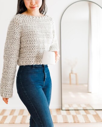 This quick and easy chunky crochet sweater will be your go-to all throughout fall! Chic and simple, it pairs effortlessly with high-waisted jeans or over dresses. It’s made with super chunky yarn so the project works up quickly and the easy top down construction means that there no sewing. The pictures show a cropped sweater but since it’s a top down sweater, you can try on your project as you crochet and easily extend the length! This ad-free printable pattern is accompanied by a video tutorial :) This pattern originally appeared on For the Frills.
