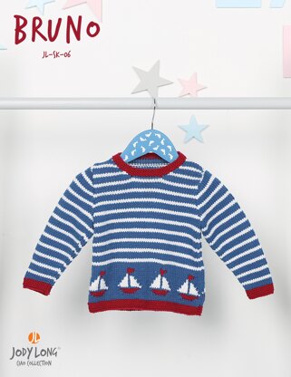 Sail away with the Bruno sweater, designed using DK weight yarn and sized for 0-11 years.