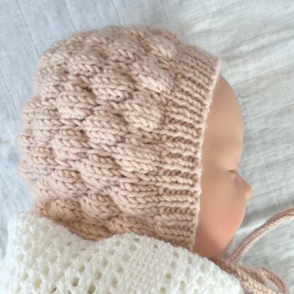 The simple bubble stitch gives a beautiful texture to this baby and child's bonnet.