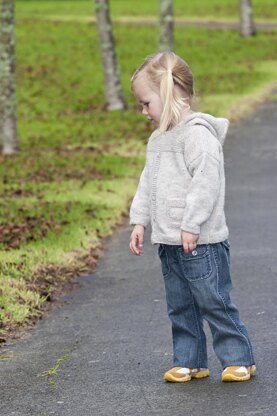 A simple knit textured hoodie with patch pockets for a boy or a girl.