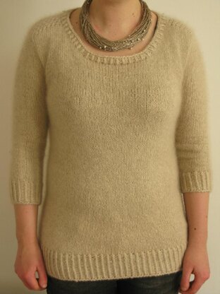 A classic fitted sweater with pretty detailing at the shoulders. The slightly longer length is flattering and elegant, while twisted ribbing gives a neat and finished look. The recommended yarn is gorgeous undyed cashmere, adding a touch of luxury to a simple knit. This sweater is seamless, knitted from the top down, and has set in sleeves. Instructions for 10 sizes are given: to fit bust 32 (34, 36, 38, 40, 42, 44, 48, 52, 56)”. Extensive guidance for altering the sweater for a perfect fit is given at the end of the pattern.