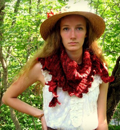 BUCKLAND FAREWELL can be made in a variety of sizes - a full Shawl, a shallow Shawl, and a Crescent Scarf are shown in the models. The design begins at a point on one corner and is worked across to the other side.