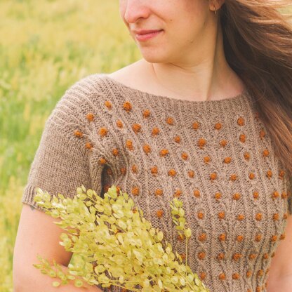 Budburst, with its branches and puffy buds, represents the magical moment when winter turns into spring. It’s worked from the top down, with drop shoulders and a boxy fit. The shoulders and neckline are made using short-rows. The stitch pattern combines twisted stitches and bobbles worked in a contrasting color, in stranded colorwork. The twisted stitches are made without a cable needle for a smooth knitting experience (tutorial included). The pattern includes 2 sleeve length options, nine sizes and detailed modifications ideas such as knitting the back in stockinette.