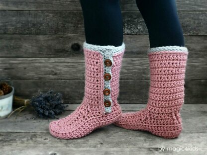 A new design for women slipper-boots that uses BULKY yarn, so it's a quick project and, in the same time, it's a wonderful warm accessory for the fall and winter season. If you wish, you could add some extra outsoles (this pattern includes also the instructions for adding extra outsoles). Having double soled boots gives you 2 benefits: •more warm for your feet •you could change the outsoles (the most used part) anytime you want This pattern is written in English, American terminology with STEP-BY-STEP INSTRUCTIONS WITH MANY PHOTOS, VERY DETAILED PHOTO-TUTORIAL AND MATERIALS LIST for making these wonderful boots that you'll love.