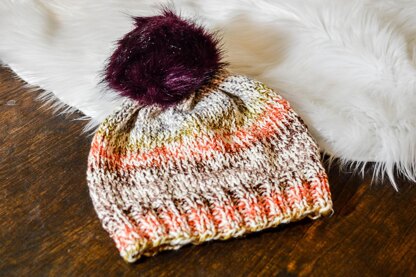 Materials: Cotton worsted weight yarn (4) Size #8 DPN and Size #9 circular needles Faux Fur Pom Pom (Or any pom pom) Darning Needle