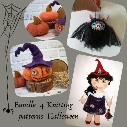 Set of 4 Halloween knitting patterns with free shipping.
