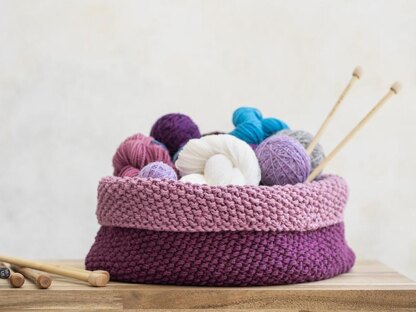 This knit basket at 30" around is a huge stash holder. The double walled fabric can be made in your favorite two colors and helps to keep the basket sturdy.