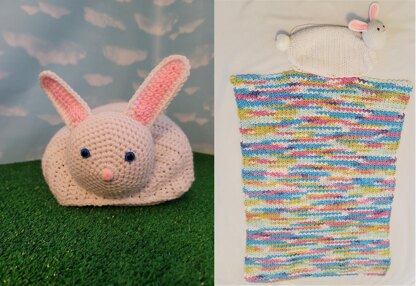 When it's naptime, this adorable rabbit does it all! Multicolored toddler blanket in shell stitch folds out for naptime, then rolls back into a bunny rabbit to be a cuddly companion the rest of the day. Instructions include YouTube tutorial for shell stitch blanket.