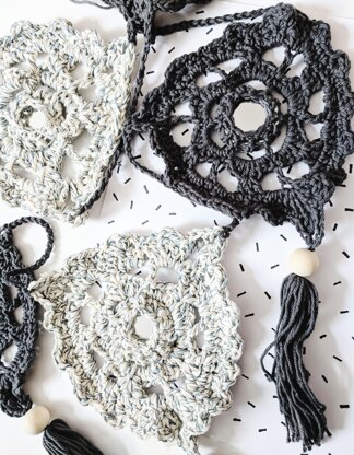Crochet bunting with mirrored centre and wooden bead tassel