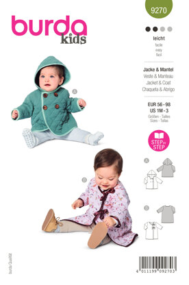 Burda Style Babies' Hooded Jacket, Coat with Tie Bands B9270 - Paper Pattern, Size 1M-3 (56-98)