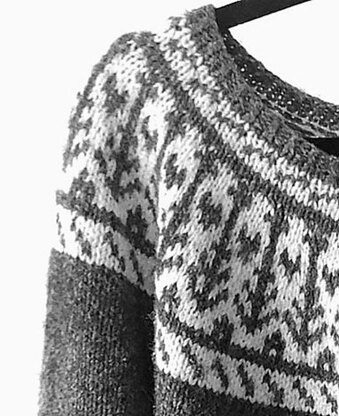 This top down, yoked pullover is accented with three bright bands: work this piece in your favorite two-color combination or get creative and experiment with a variety of colors for a truly custom piece.
