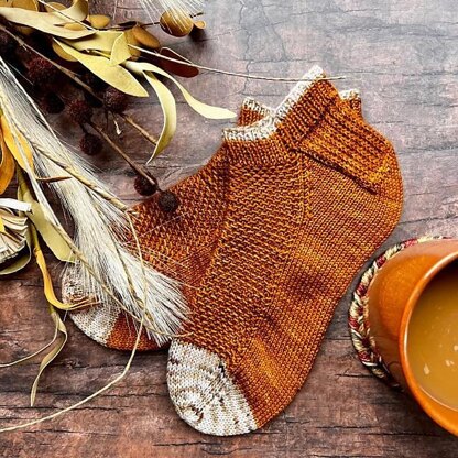Skill level: Beginner Sock Knitter or anyone comfortable with knitting in the round. Chart: NEVER. All of my patterns are written for ease of reading. Language: Standard American Knit Terms written in English. It’s a great weekend project. And… the perfect short boot socks. So friend, grab your favorite yarn, a beverage, and sit down to relax in your favorite coffee shop.