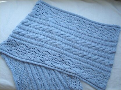 This luxurious wrap is fantastic all year long. It is chunky, warm and the lace pattern keeps it nice and airy. Knit out of S. Charles Cashmere Breeze but any chunky weight yarn will do. Great to wear all year long.