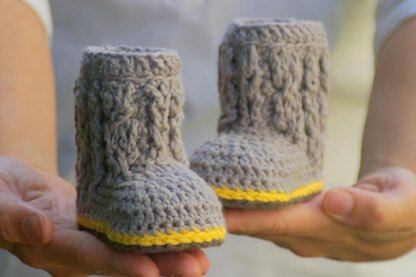 I Love Love Love Cable Boots. But, I must say, I am not the biggest fan of doing crochet cables. That is why I love to make these boots with the easy cables. No complicated stitches for these babies. No sir! Really, if you can chain, and single crochet, you can make this kind of cable. Pull these sweet little boots on with a little dress or a pair of jeans. They are just waiting to be worked up and put on your little ones feet so that you can wow all your friends with your super crochet skills. ;o)