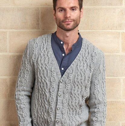 This is a pattern for a cable cardigan, originally published in The knitter. It has two cables, and 2 x 2 rib edges. Photo The Knitter.