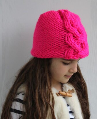 This cloche is a great and cozy staple for this winter. It is knit with a bulky weight yarn and has a simplicity to it that allows it to go with any style coat or jacket. There is one cable up the front or if you wish to wear it to the side. This pattern is sized for babies, toddlers, children and small and M/L adults. It makes a great knit gift for yourself or a loved one. This pattern is knit flat with a seam up the back.