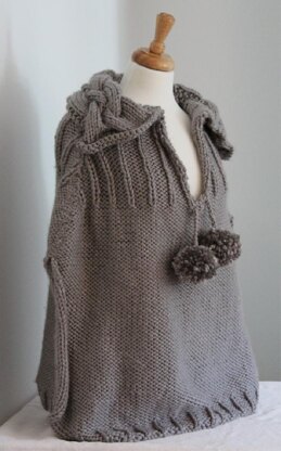 This Cape is bulky, soft, warm and very easy to wear. Capes are so popular this season and the armholes make it very easy to move around in. The very large cabled collar adds a lot of interest and makes this piece unique. It measures 21" down from lower shoulder edge to the bottom and 29" across when laying flat or with arms spread out side to side.
