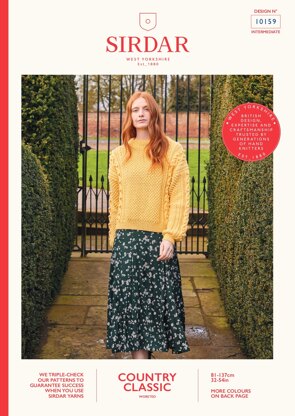 Cable Jumper in Sirdar Country Classic Worsted - 10159 - Downloadable PDF est un modèle de Tricot Intermédiaire par Sirdar, disponible au format PDF téléchargeable et comprend des instructions en Anglais. Super amusant à réaliser, ce modèle pourrait être votre prochaine œuvre d'art !