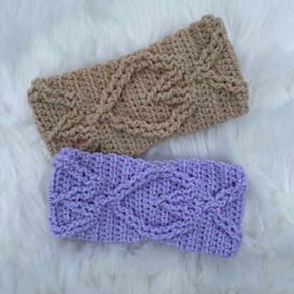Cabled Heart Ponytail Ear Warmer pattern makes a beautiful heart design made with cables to make a great headband for winter weather.