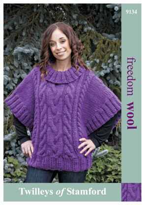 Cabled Poncho Sweater in Twilleys Freedom Wool - 9134 est un modèle de Tricot par Twilleys, disponible au format PDF téléchargeable et comprend des instructions en Anglais. Super amusant à réaliser, ce modèle pourrait être votre prochaine œuvre d'art !