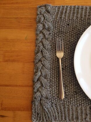 Cabled Seed Placemat is a fun, easy pattern that works up quickly and is great for gifts. The body of the pattern is worked in seed stitch, with ribbing on the top and bottom and cabled sides. And, bonus, only uses one ball of the suggested yarn!