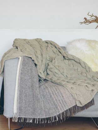 From the Knit Rowan website: Knit this chunky cabled throw from 10 Simple Projects for Cosy Homes. Designed by Sarah Hatton using the stunning combination of Pure Wool Worsted (wool) and Creative Focus Worsted (wool and alpaca), these yarns are held together and worked as one throughout making it super cosy.