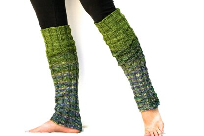 Beautiful cables and blended ombre color make up these practical leg warmers. Thoughtful details make up the design: buttons at the cuffs to allow the warmers to fit over shoes and boots, color blending built into the pattern. There are also no increase stitches, as the cables strategically unfold through the pattern to allow the warmers to grow at the top. These are a fun and relatively easy knitting project, and the finished product will keep your legs warm all winter long in style. One size fits many. Finished measurements, when laid flat: 19” in total length, measured from top to bottom hem, stretchy 9” circumference at bottom edge when buttoned, un-stretched 11” circumference at top edge, un-stretched