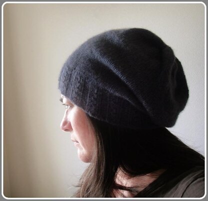An easy knit, this hat uses gauge (through changing needle sizes) to achieve changes in sizing and fabric texture.