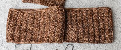 Cowl circumference can be adjusted by adding or removing cast on stitches in increments of 5. Cowl height can be adjusted by working more or fewer pattern rounds. Please note that while gauge is not crucial to this pattern, working with a different gauge and/or modifying the size of the cowl will affect the size of the finished cowl and the amount of yarn required to finish the project.