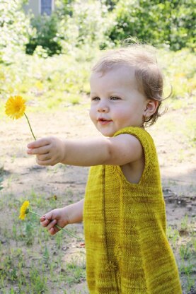 The yellow flowers on this dress are textured and subtle, because just like the childhood of your little ones, they can slip away unnoticed if you don’t look closely. But for those who do pay attention, the beauty is those small things is rewarding and clear!