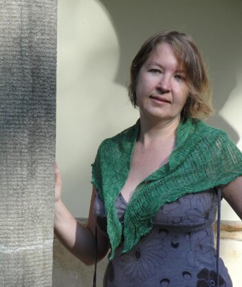 I’ve knitted the shawl in a laceweight yarn, Organic Lace Merino by Tall Yarns 'n Tales, which I dyed using Helen Deighan’s easy-peasy microwave dye, also available from Tall Yarns, in Spring Green. In a laceweight it’s a light little shawl, which can be worn as a shoulder shawl or a neckerchief; but you could make a warmer, larger autumn or winter piece with sock or even DK weight yarn. The pattern repeats are simple and easy to memorise, making this an ideal project to take with you on the move.