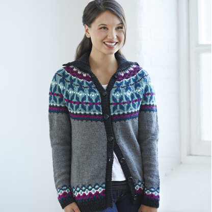 Valley Yarns Campion is a stylish, updated Fair Isle woman’s jumper for autumn! This classic cardigan has a modern fit and features a generous rolled collar in vibrant hues. It is knit from the bottom up in the round to the neckline and then steeked all the way up the front. Knit in Valley Yarns Northampton, the softest 100% wool in a beautiful collection of solid colours and heathered shades with excellent stitch definition. The Fair Isle patterns are in chart form only.