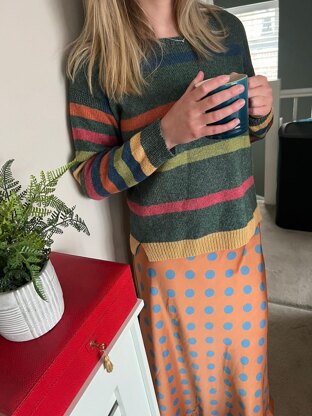 Here’s my new go-to sweater! The sporty hem vents and pretty yoke detailing make for a feminine look, while the jolly stripes mean that it can be styled with virtually anything.
