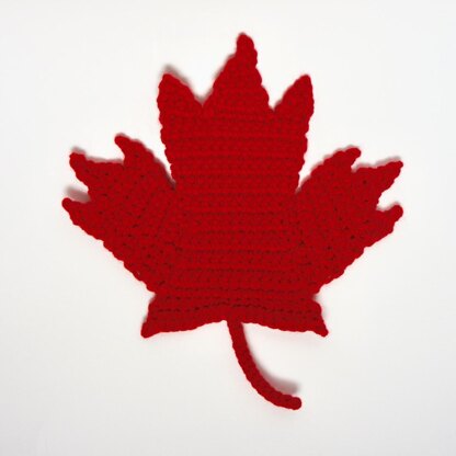 The maple leaf is about 21 cm tall when completed, including the stem. The pattern includes written instructions as well as a stitch pattern.