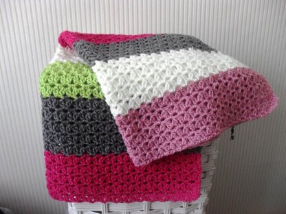 This cute, simple striped blanket is an awesome homemade gift for baby showers. The puff stitch and sweet colors are perfect for a baby girl. A lovely, very simple and easy to make pattern can be a great beginner project.