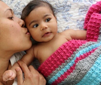 A beautifully textured blanket that may be made in one solid color or in colorful stripes. Blanket is textured on right side and smooth on the wrong side.