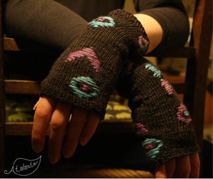 The mitts are inspired by the comic book hero Hawkeye (and Hawkguy). One of my favourite runs of the comics is the Fraction/Aja run. The covers have a really great graphic aesthetic and I choose these aesthetic