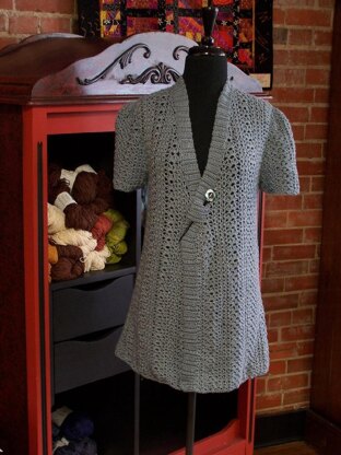SIZES S (M, L, XL, 2X, 3X) To fit bust 33 (37, 41, 45, 49, 53)" (84 (94, 104, 114.5, 124.5, 134.5) cm) NOTE: the fronts overlap 3.5 inches and that number is not included in the finished bust measurement.
