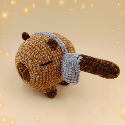 Crochet the cheekiest capybara “Trickster”—complete with a playful knife-through-head headband!