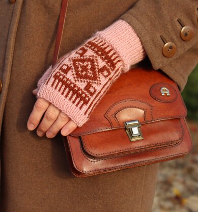The handwarmers are knitted using two colour stranded knitting. The pattern includes both charts and written instructions. Photo tutorial are given for picking up stitches for thumb.