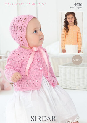 Cardigan and Bonnet in Sirdar Snuggly 4 Ply 50g - 4436 - Downloadable PDF est un modèle de Crochet par Sirdar, disponible au format PDF téléchargeable et comprend des instructions en Anglais. Super amusant à réaliser, ce modèle pourrait être votre prochaine œuvre d'art !