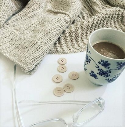 GARMENT CONSTRUCTION: The cardigan is worked seamless from the top down. Cardigan is worked back and forth and once yoke is completed the sleeves are put on hold and the rest of the body is completed. Sleeves are then picked up and finished, knitted in the round. Button band and Neck band are finished last. The size and length of the garment can be easily adjusted by increasing or decreasing to your liking and the length can be made to suit.