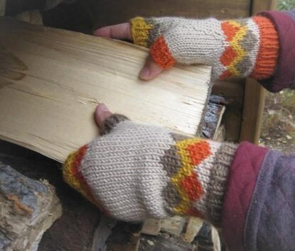 These warm and cozy fingerless mitts are decorated with stranded colorwork in a diamond and zigzag pattern which is simple yet striking. They are sized to be close-fitting and comfortable without restricting hand movement. Whether worn on their own or with the coordinating hat and cowl, they're the perfect accessory for those chilly autumn days! These mitts are worked in 4 contrasting colors of aran weight yarn on 3.75 mm (US 5) needles. The pattern is available individually through this listing or with the coordinating pieces as Carotenoid Collection.