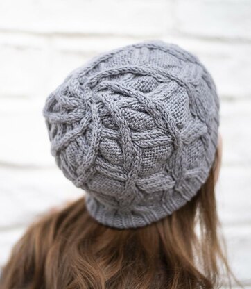 Gauge 20 stitches and 28 rounds = 4”/10 cm on size US 8/5 mm needles in Cable pattern after blocking.