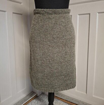 CARROL - A lovely skirt in stocking stitch in Shetland wool. The style is a straight skirt shaped around the hips. The model was intended as a matching part for the cardigan SKELBO. However, plain knitted the skirt suits the cardigan better.