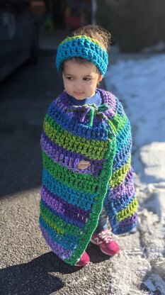This is a great little cape to keep littles warm in the carseat since puffy coats are not safe. Cape is one size but could fit babies to toddlers.