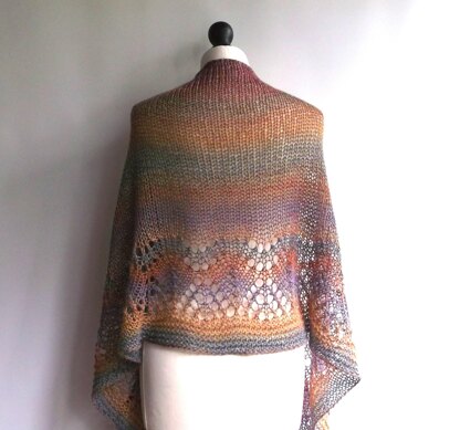 This pretty shawl is worked on a larger than recommended needle, which creates a lightweight garment with lots of drape.