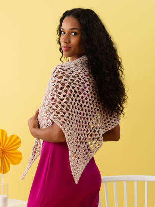 A fun lace project with a stitch pattern that mimics crocheted fabric, this shawl is made from the point up, increasing at the sides. The pattern is created by alternating rows with different needle sizes for an engaging knit!