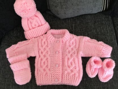 My Irish roots have inspired my love of the Aran style of knitting and I have introduced a modern twist to my creations. Some experience is required to knit this beautiful pattern and it is suitable for a boy or girl.